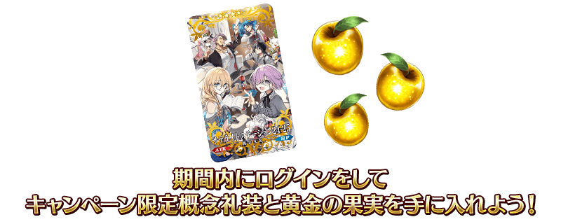 下記期間中に3回ログイン(1日1回カウント)すると、最大でキャンペーン限定概念礼装「★4(SR)サテライトステーション24-25」、黄金の果実3個をプレゼント!