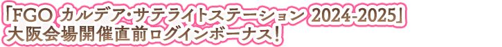 下記の期間中、「FGO カルデア・サテライトステーション 2024-2025」大阪会場開催を記念して、キャンペーン限定概念礼装がもらえる「FGO カルデア・サテライトステーション 2024-2025」大阪会場開催直前ログインボーナスを実施いたします!