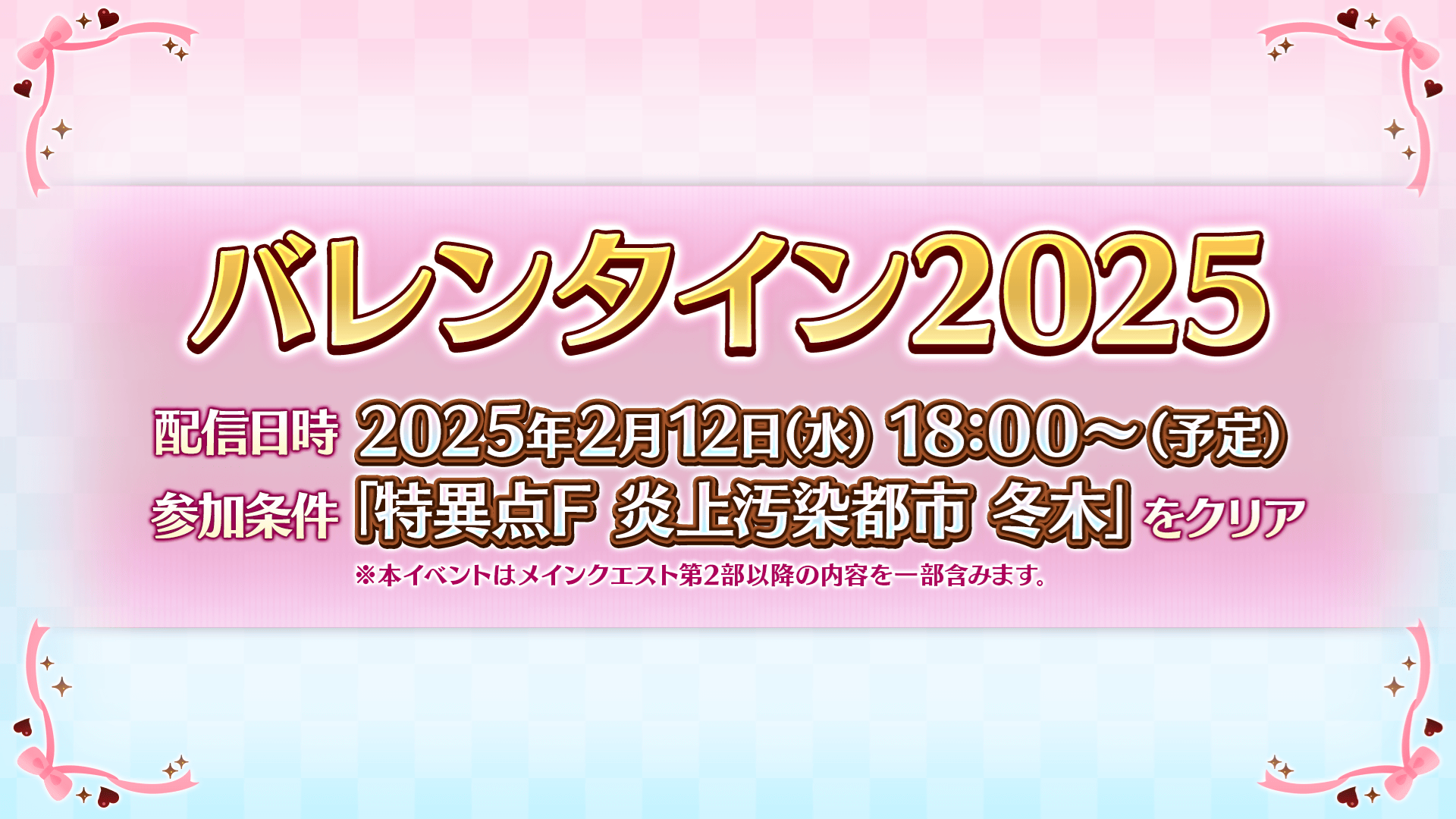 期間限定イベント「バレンタイン2025」が2025年2月12日(水) 18:00より開幕予定であることを発表いたしました。