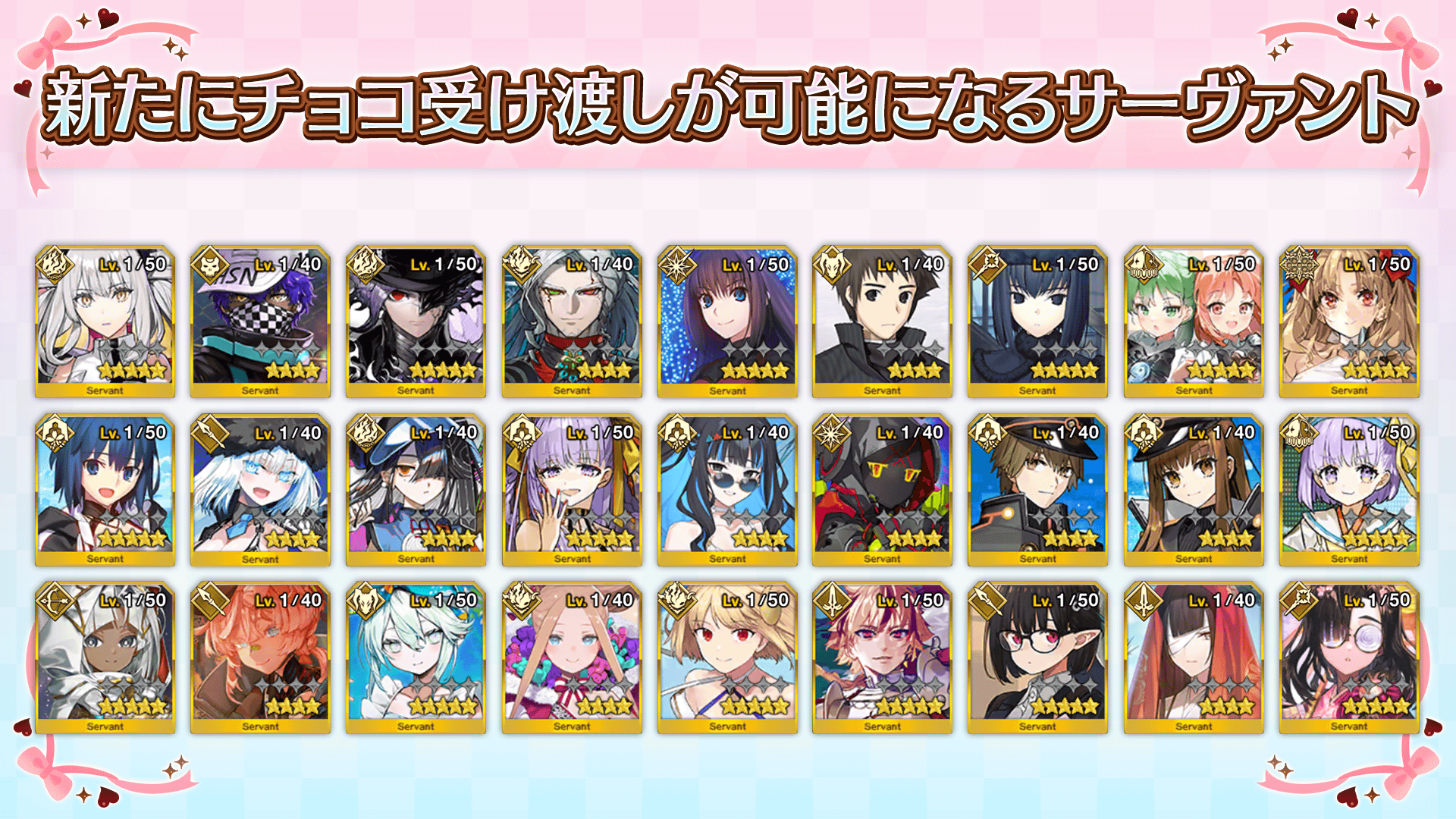 新たにチョコ受け渡しが可能になるサーヴァントは以下になります。