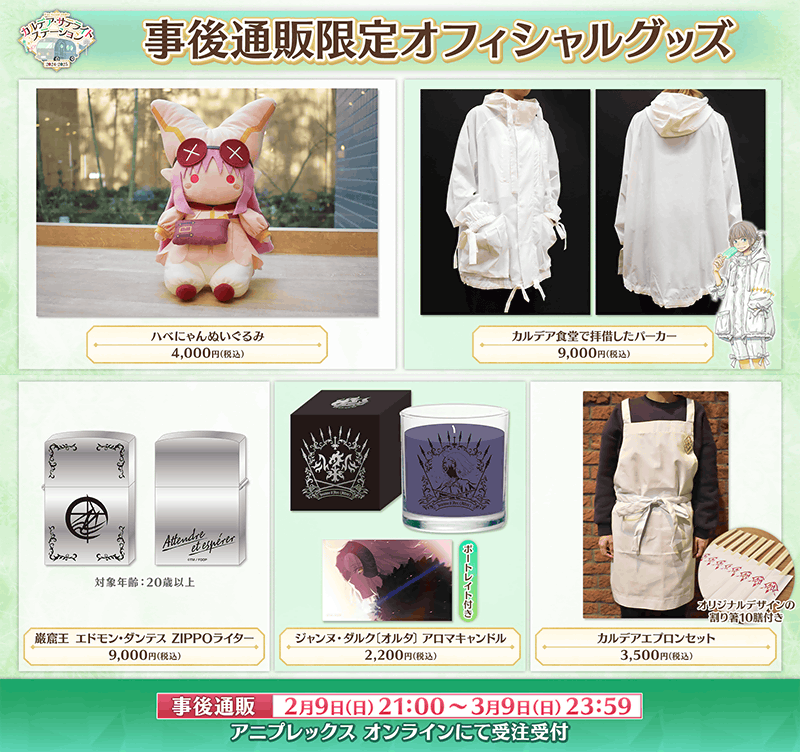 「Fate/Grand Order カルデア・サテライトステーション 2024-2025」オフィシャルグッズの事後通販の受注受付を、2025年2月9日(日) 21:00より開始いたします。