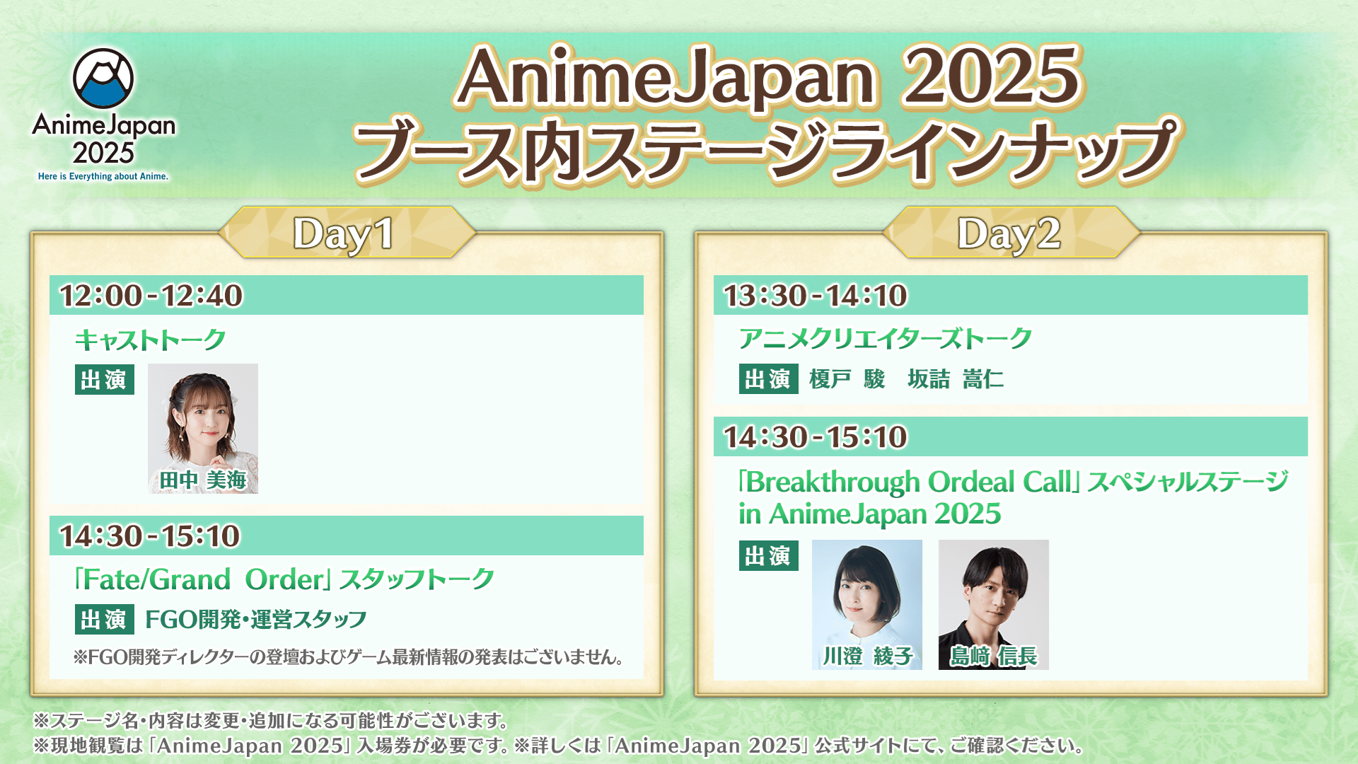 ステージ応募や入場券についての詳細は「AnimeJapan 2025」公式サイトをご確認ください。