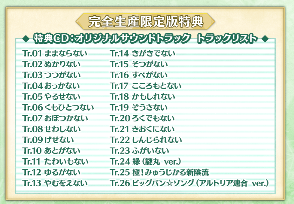 アニメ「Fate/Grand Order 藤丸立香はわからない」Season2のBlu-ray&DVD特典CDのトラックリスト・試聴動画を解禁いたしました。