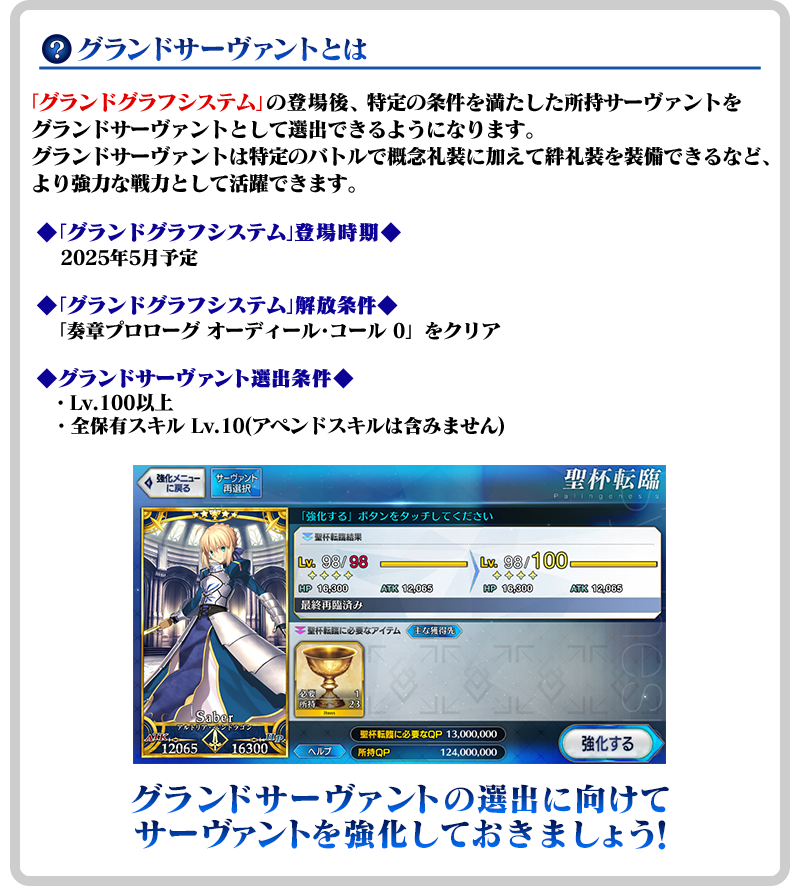 対象クラスのグランドサーヴァント候補となるサーヴァントを強化して、