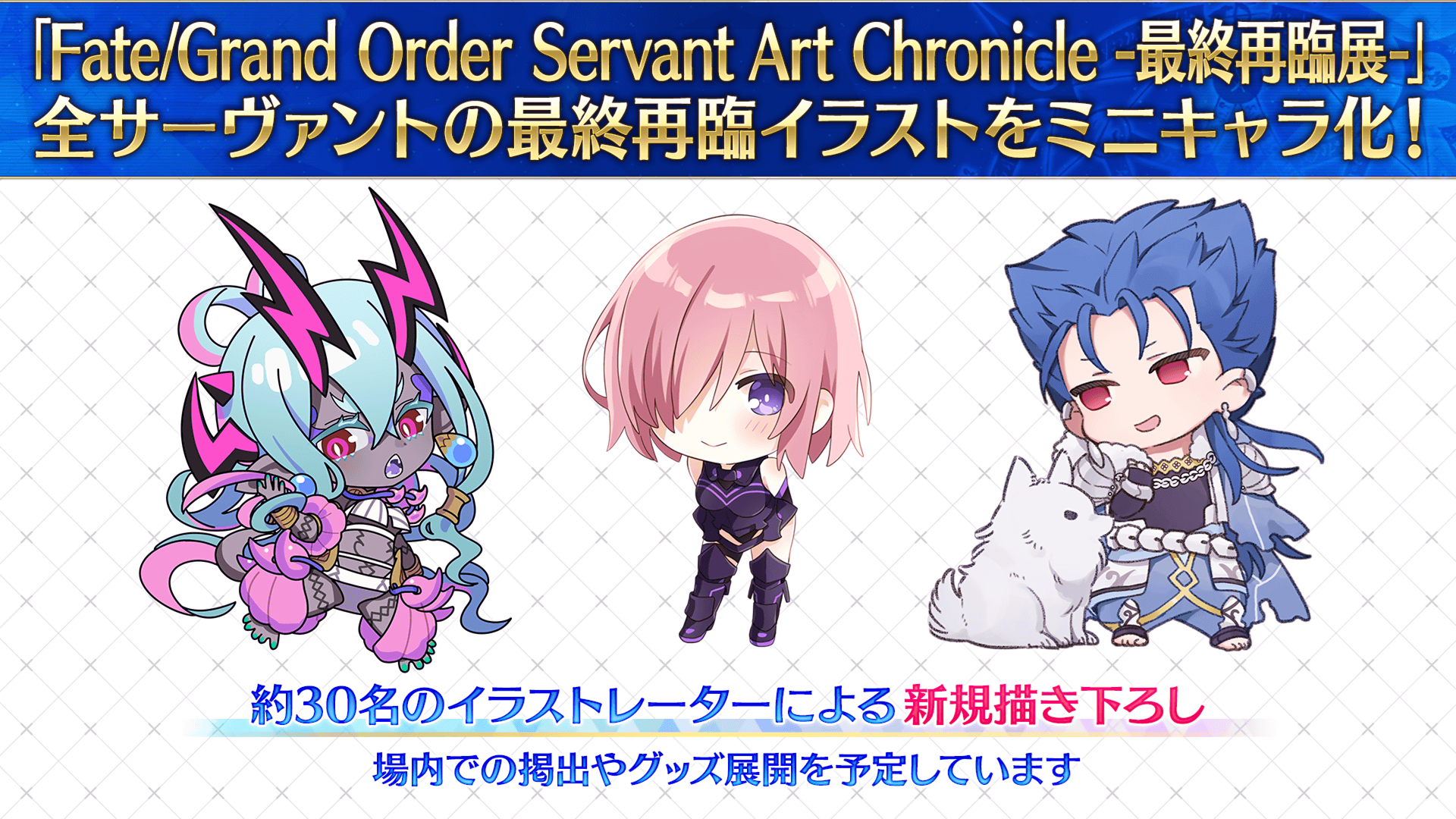 全サーヴァントの最終再臨イラストをミニキャラ化することが決定いたしました。