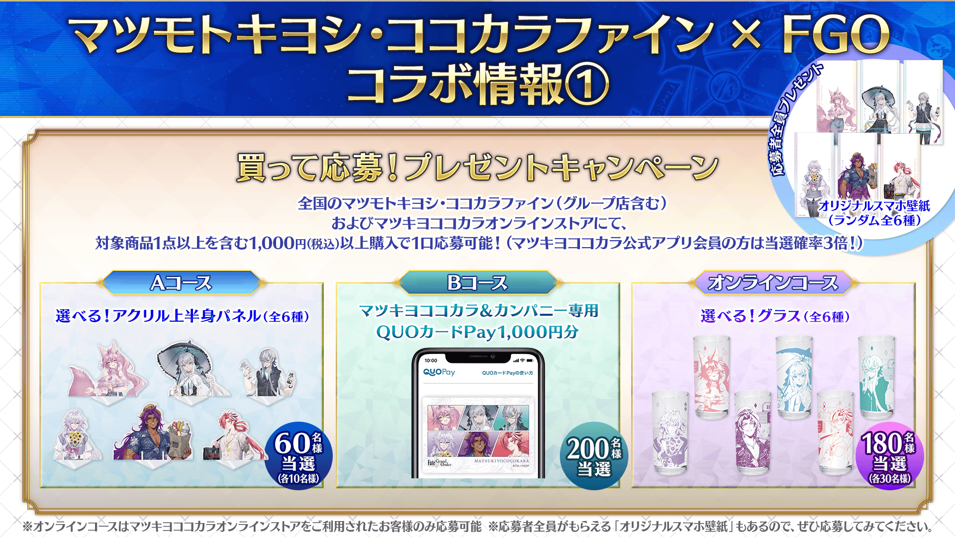 ◆「マツモトキヨシ・ココカラファイン」×「Fate/Grand Order」のコラボが決定!◆