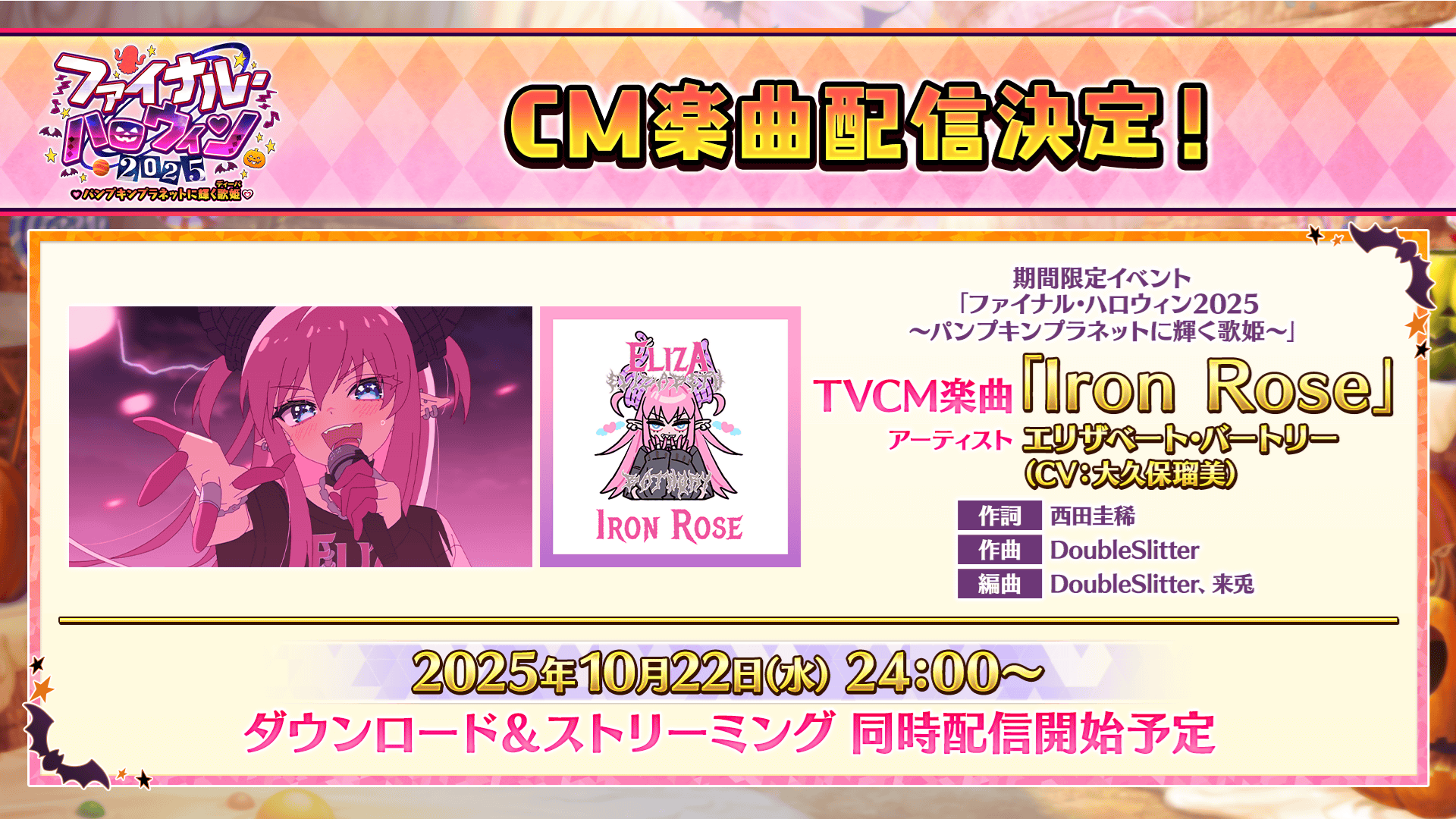 期間限定イベント「ファイナル・ハロウィン2025 ~パンプキンプラネットに輝く歌姫~」 TVCM楽曲「Iron Rose」のダウンロード&ストリーミング配信が決定いたしました。
