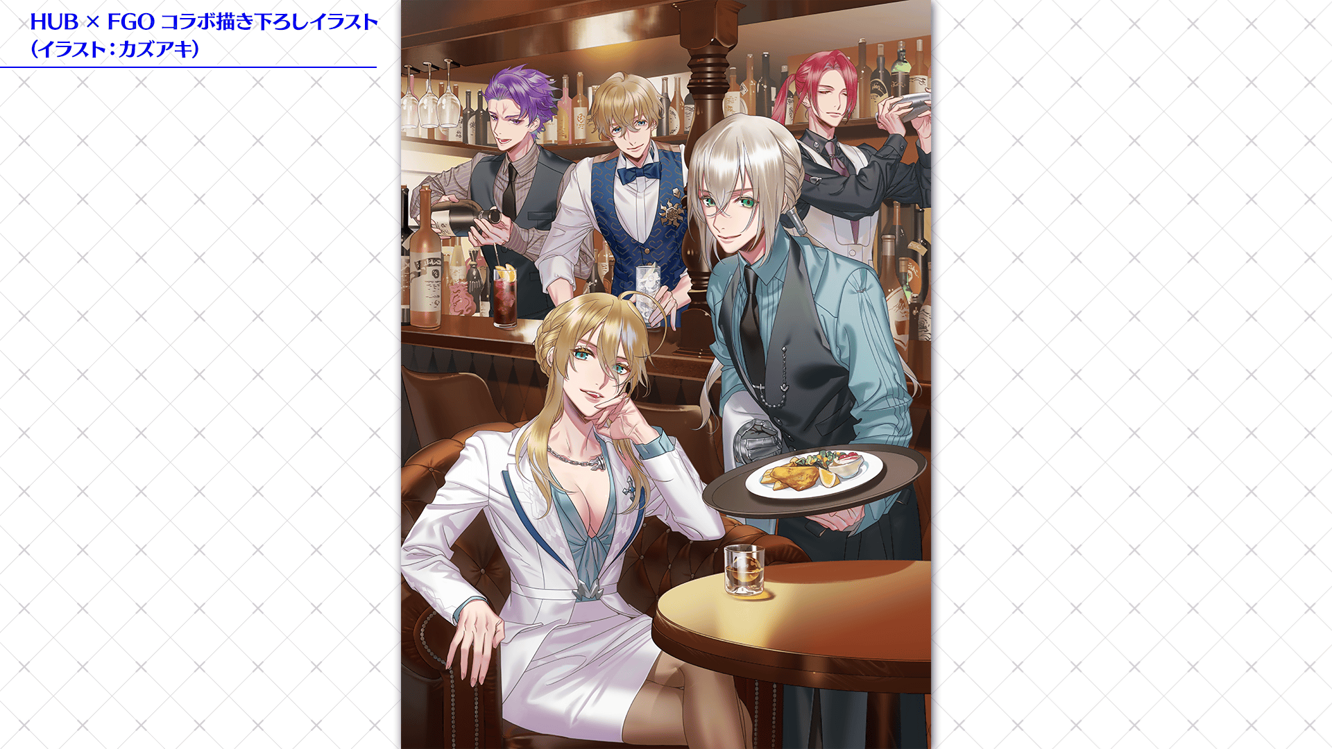 「英国風パブ HUB」×「Fate/Grand Order」のコラボレーションが決定し、カズアキさんによる描き下ろしイラストを公開いたしました。