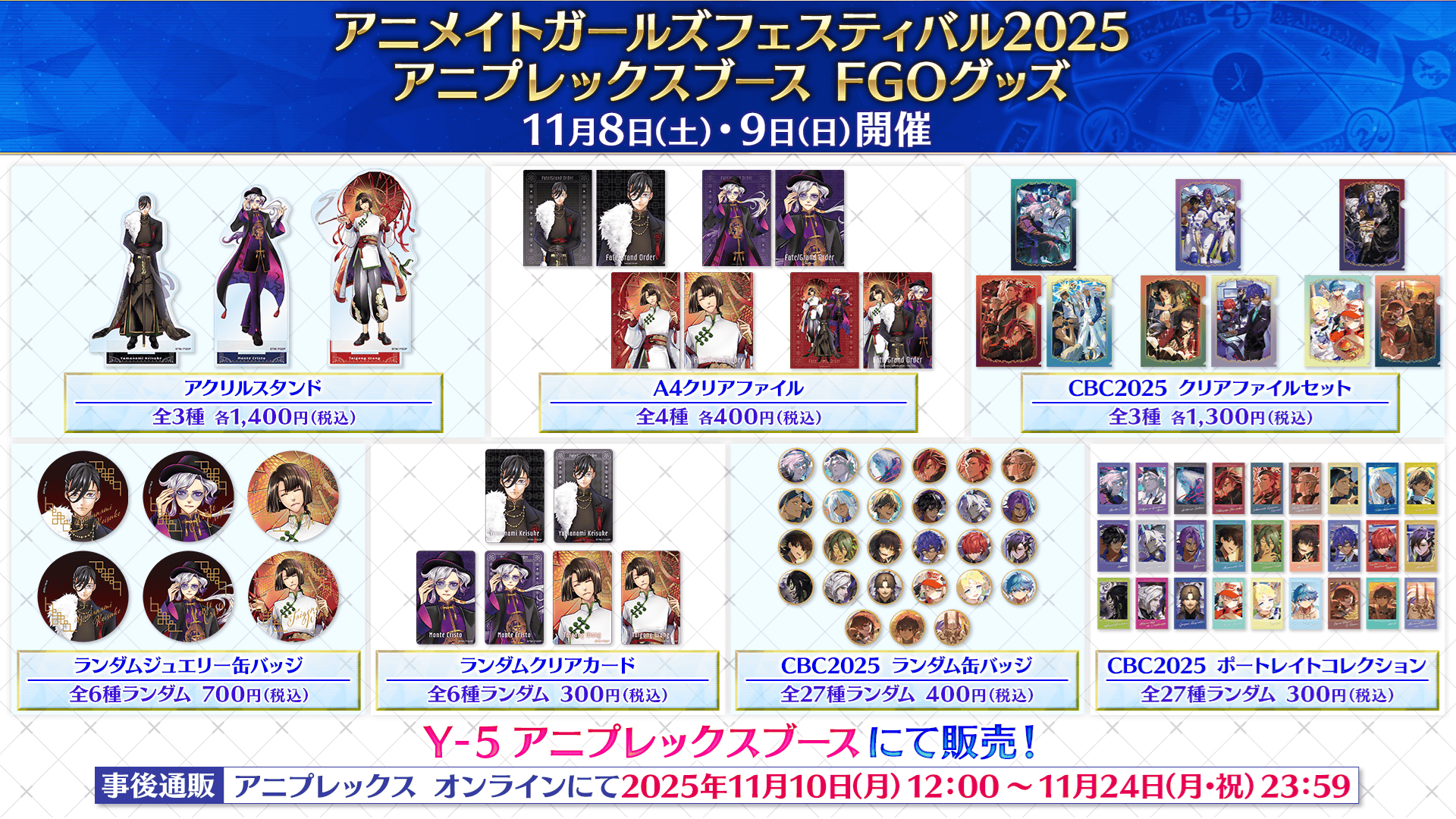 2025年11月8日(土)・9日(日)に池袋サンシャインシティにて開催される「アニメイトガールズフェスティバル2025」の「アニプレックス」ブースにて、描き下ろしのイラストを使用したグッズや「カルデアボーイズコレクション 2025」のイラストグッズを販売いたします。