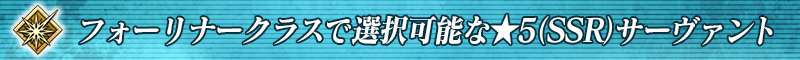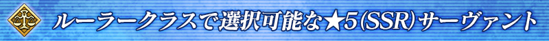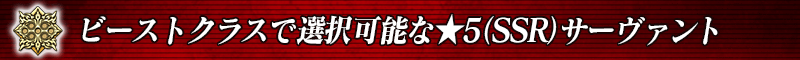 選択した★5(SSR)サーヴァントの中からランダムで1騎のみを確定で召喚可能!