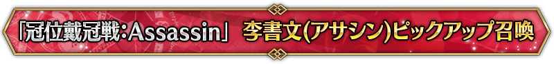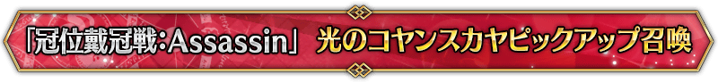 ◆『「冠位戴冠戦:Assassin」ピックアップ召喚』期間◆