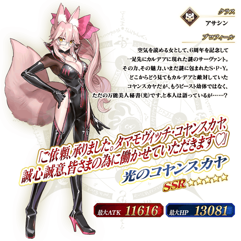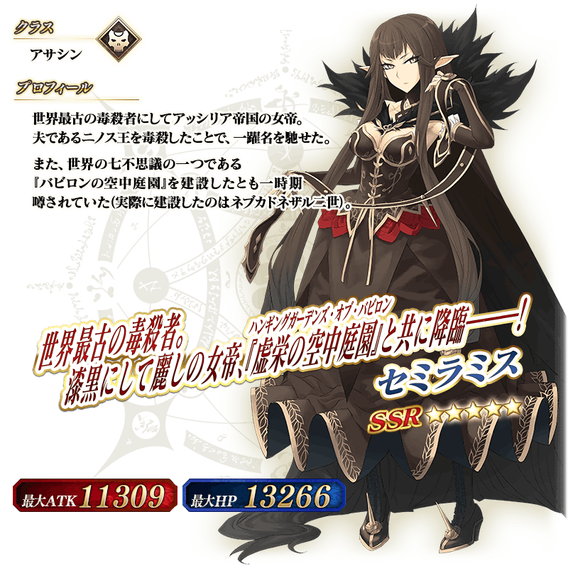 ※★4(SR)以上確定にはサーヴァントと概念礼装が含まれます。 ※アサシンクラス以外のサーヴァントも排出されますのでご注意ください。 ※2019年1月1日(火) 0:00以降に新たに配信されるメインストーリー、期間限定イベント、一部クエスト、キャンペーンおよび召喚では、真名隠し対象サーヴァントの真名が表示されます。