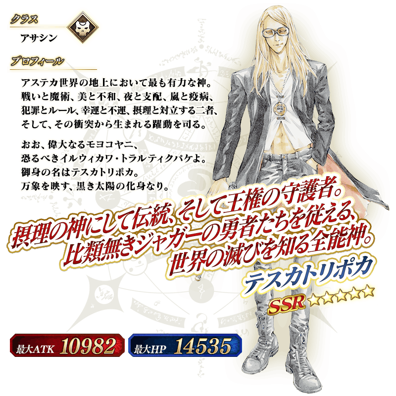 ※「★5(SSR)テスカトリポカ」は、霊基再臨してもセイントグラフおよびバトルキャラなどが第2段階までしか変化しません。