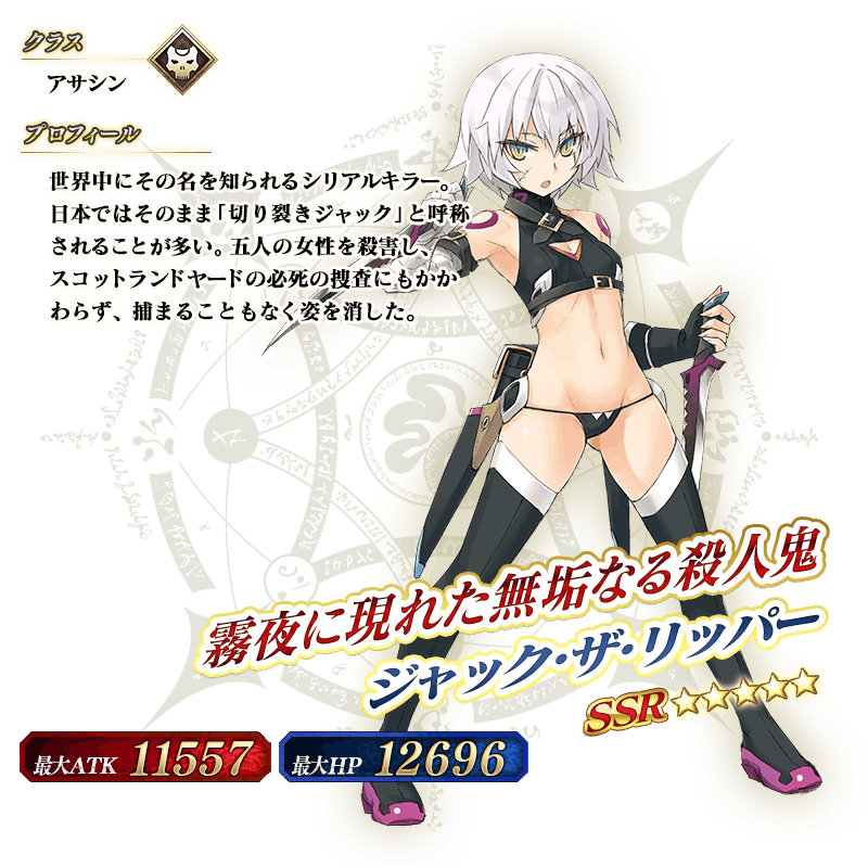 ※上記の「★5(SSR)ジャック・ザ・リッパー」のイラストは霊基再臨第2段階のものです。