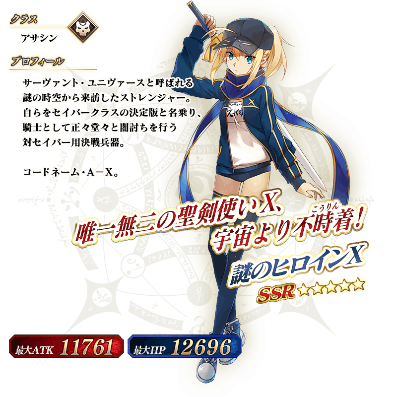 ※上記の「★5(SSR)謎のヒロインX」のイラストは霊基再臨第2段階のものです。