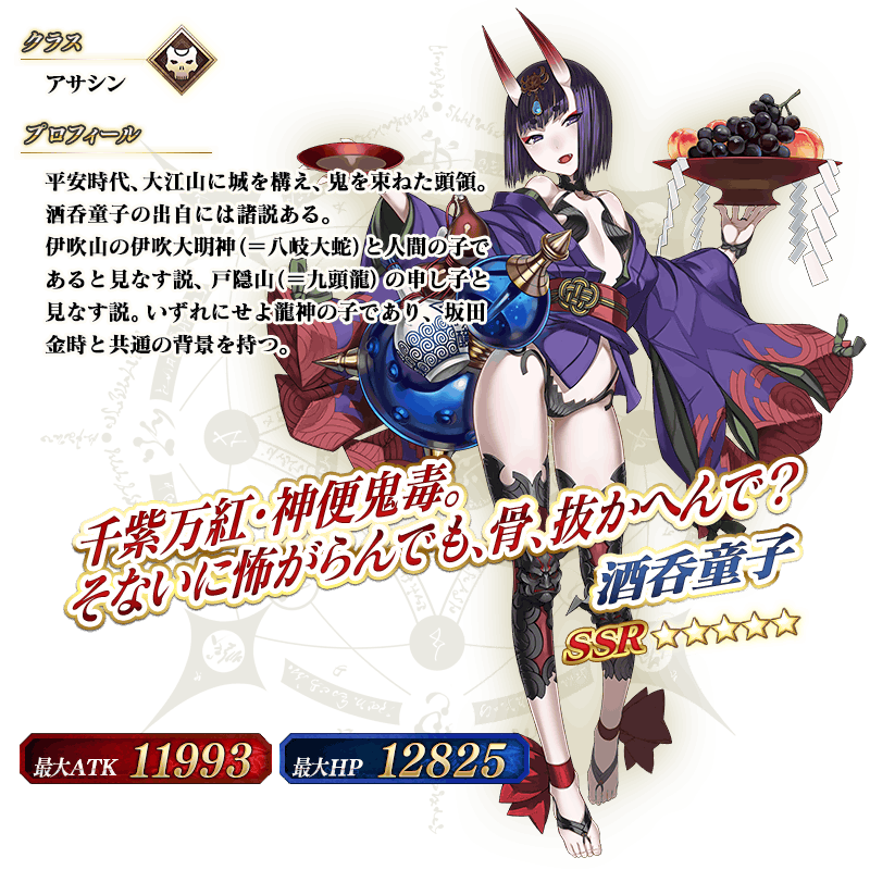 ※上記の「★5(SSR)酒呑童子(アサシン)」のイラストは霊基再臨第2段階のものです。