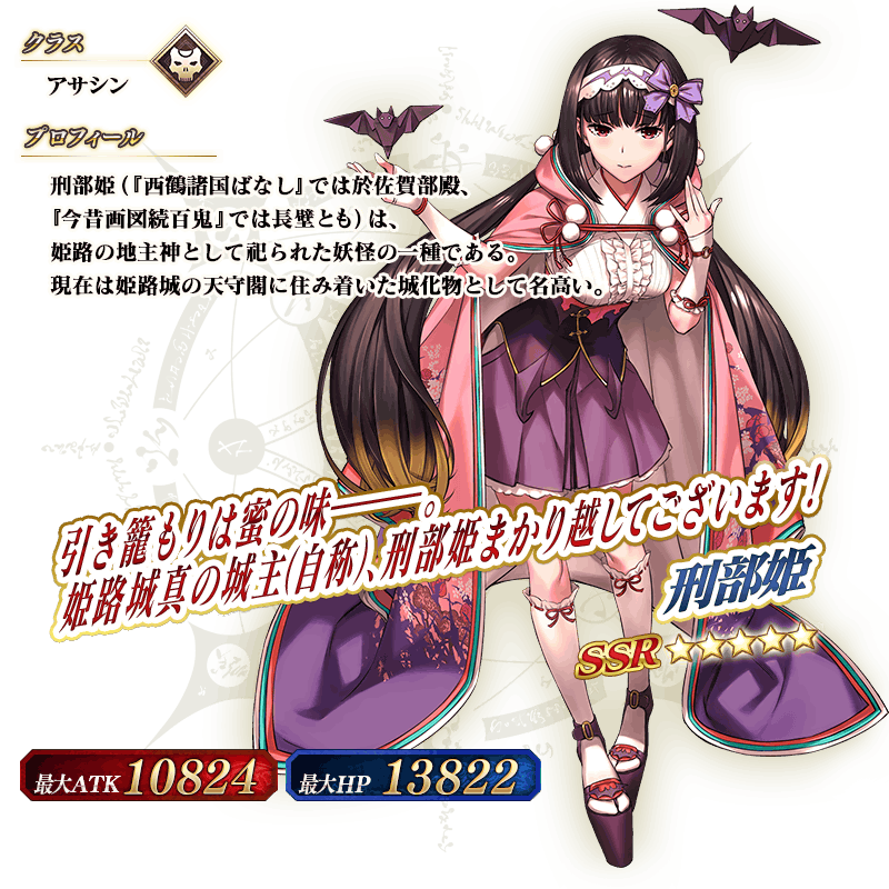※上記の「★5(SSR)刑部姫(アサシン)」のイラストは霊基再臨第2段階のものです。