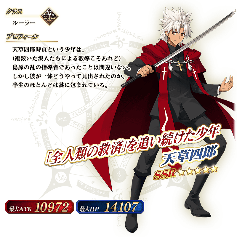 ※上記の「★5(SSR)天草四郎」のイラストは霊基再臨第2段階のものです。