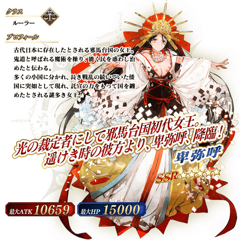 ※上記の「★5(SSR)卑弥呼」のイラストは霊基再臨第3段階のものです。