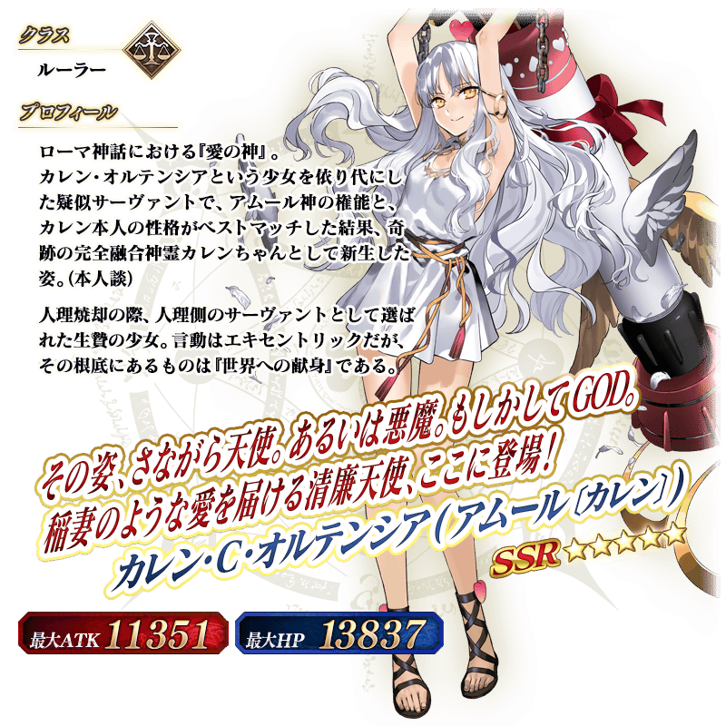 ※「★5(SSR)アムール〔カレン〕」は霊基再臨をおこなうことで、セイントグラフの名称が「★5(SSR)カレン・C・オルテンシア」に変化します。
