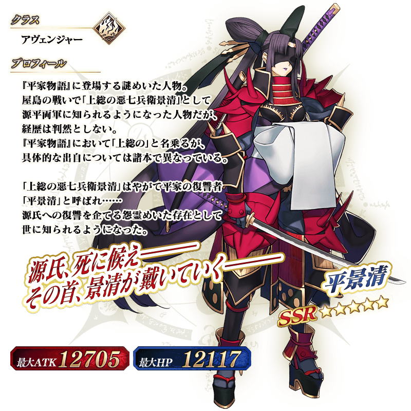 ※上記の「★5(SSR)平景清」のイラストは霊基再臨第2段階のものです。