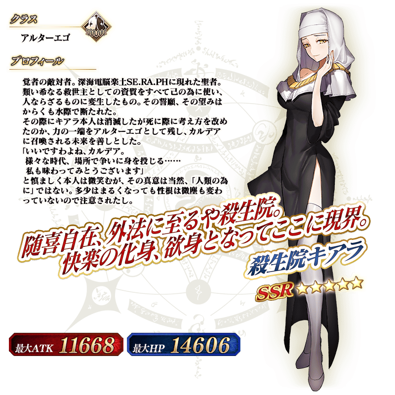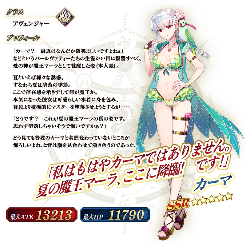 ※上記の「★5(SSR)カーマ(アヴェンジャー)」のイラストは霊基再臨第2段階のものです。