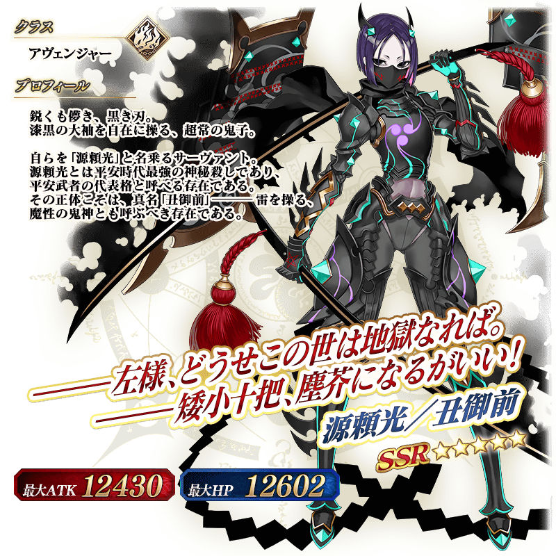 ※上記の「★5(SSR)源頼光/丑御前」のイラストは霊基再臨第2段階のものです。