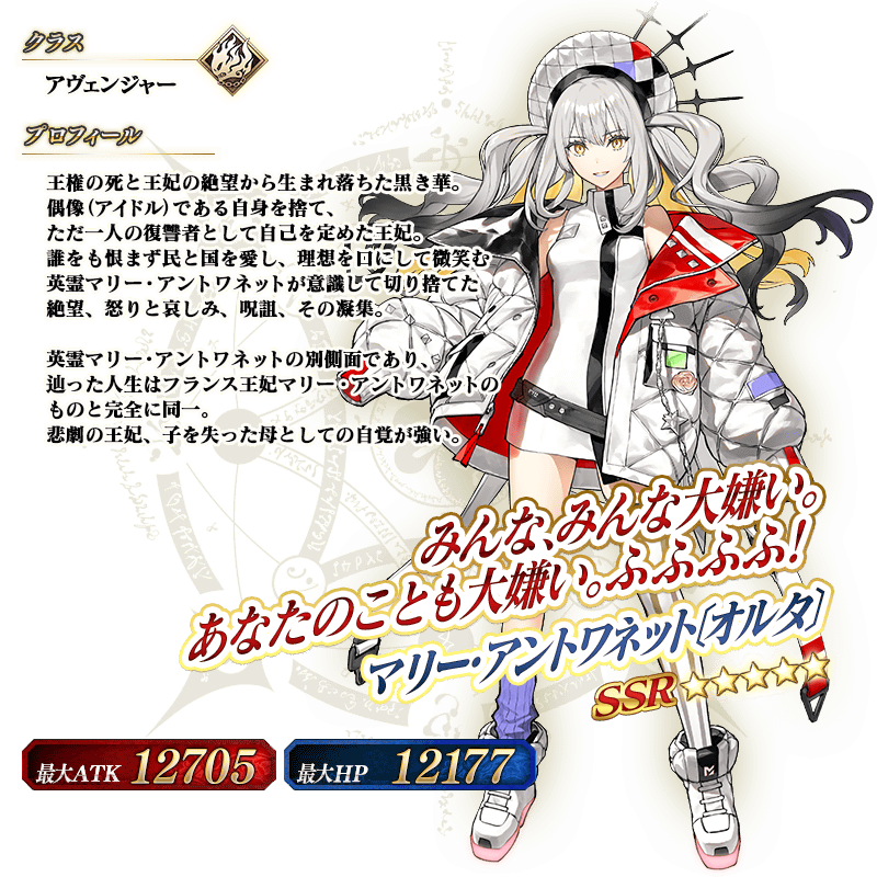 ※上記の「★5(SSR)ジャンヌ・ダルク〔オルタ〕(アヴェンジャー)」のイラストは霊基再臨第2段階のものです。