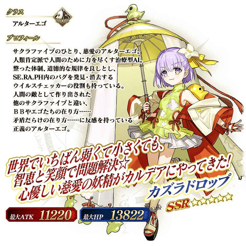 ※上記の「★5(SSR)カズラドロップ」のイラストは霊基再臨第3段階のものです。