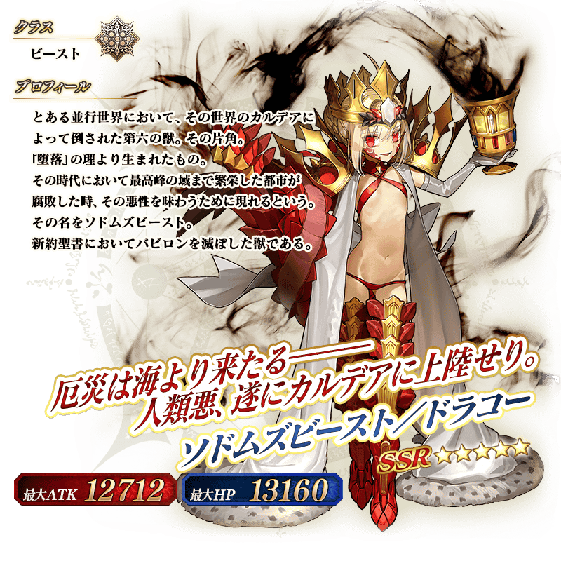 ※上記の「★5(SSR)ソドムズビースト/ドラコー」のイラストは霊基再臨第2段階のものです。