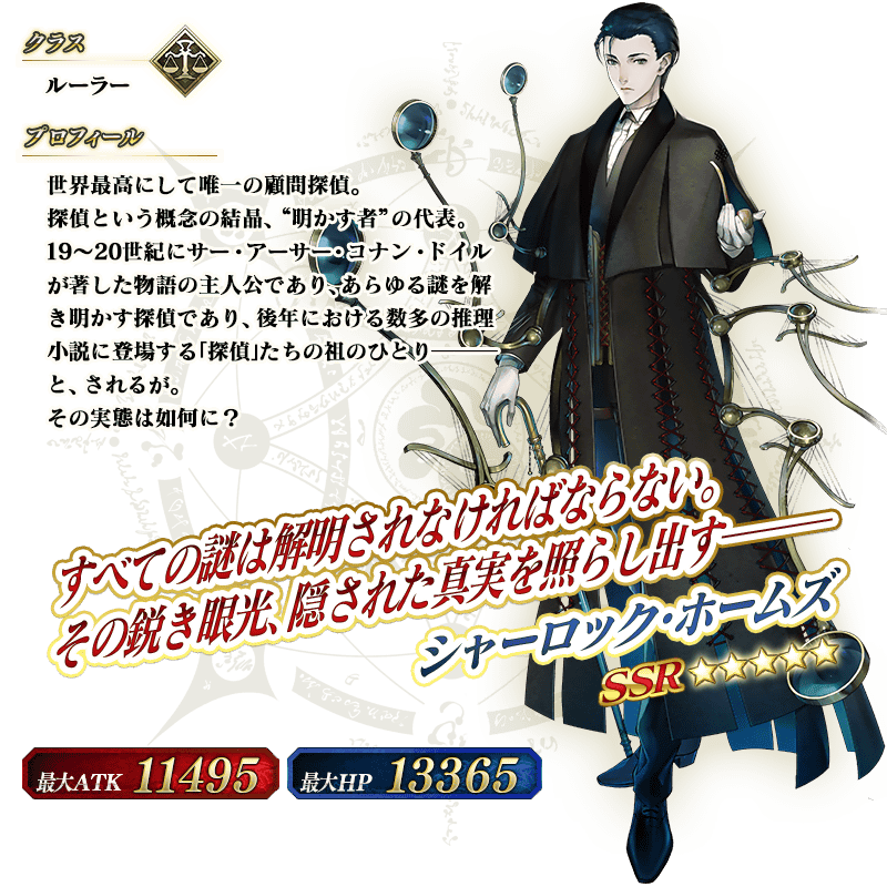 ※上記の「★5(SSR)シャーロック・ホームズ」のイラストは霊基再臨第2段階のものです。