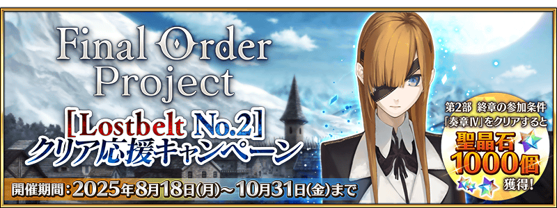 「Final Order Project [Lostbelt No.2]クリア応援キャンペーン」では、「第2部 終章」に向けて、さまざまな施策で第2部のクリアを応援いたします!