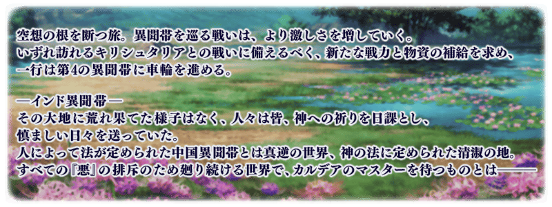 | 『Lostbelt No.4 創世滅亡輪廻 ユガ・クシェートラ』の「第10節」をクリアせよ |