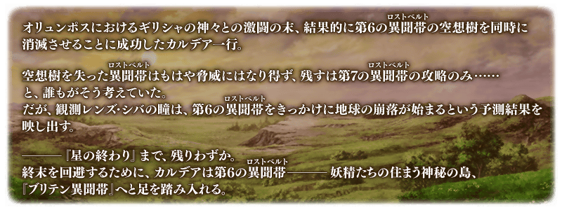 | 『Lostbelt No.6 妖精円卓領域 アヴァロン・ル・フェ』の「第16節」をクリアせよ |