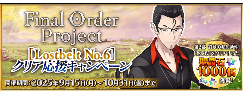 「Final Order Project [Lostbelt No.6]クリア応援キャンペーン」では、「第2部 終章」に向けて、さまざまな施策で第2部のクリアを応援いたします!