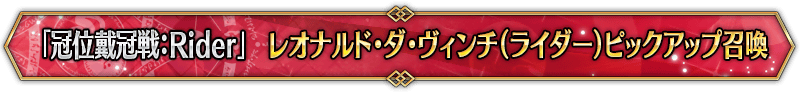 ◆『「冠位戴冠戦:Rider」ピックアップ召喚』期間◆