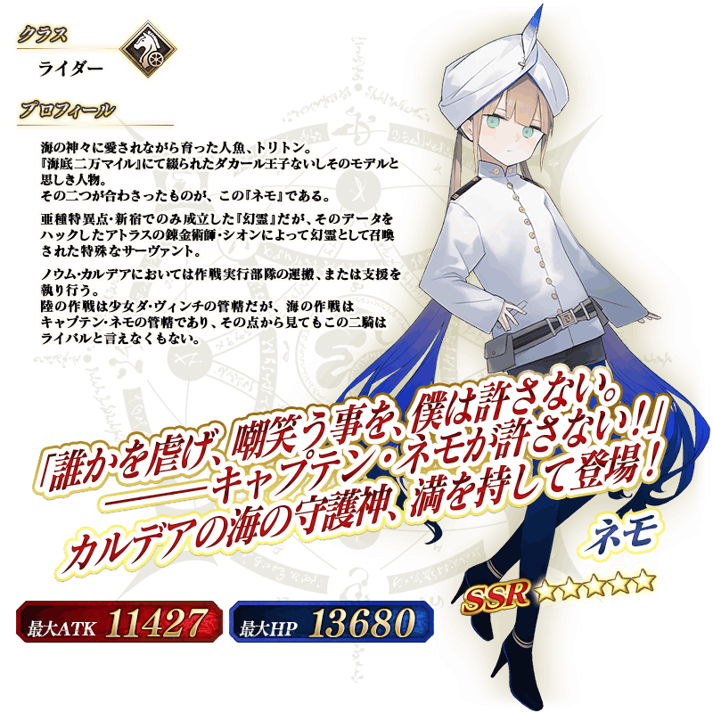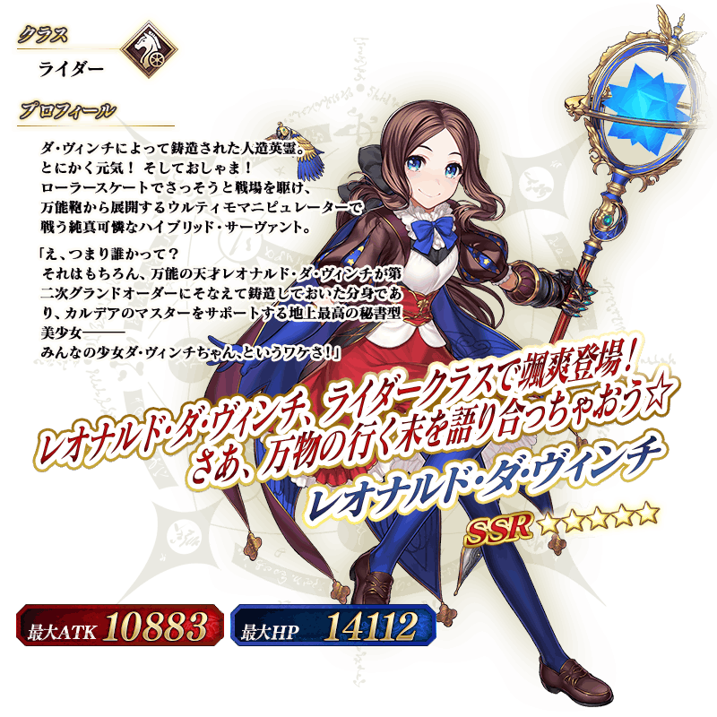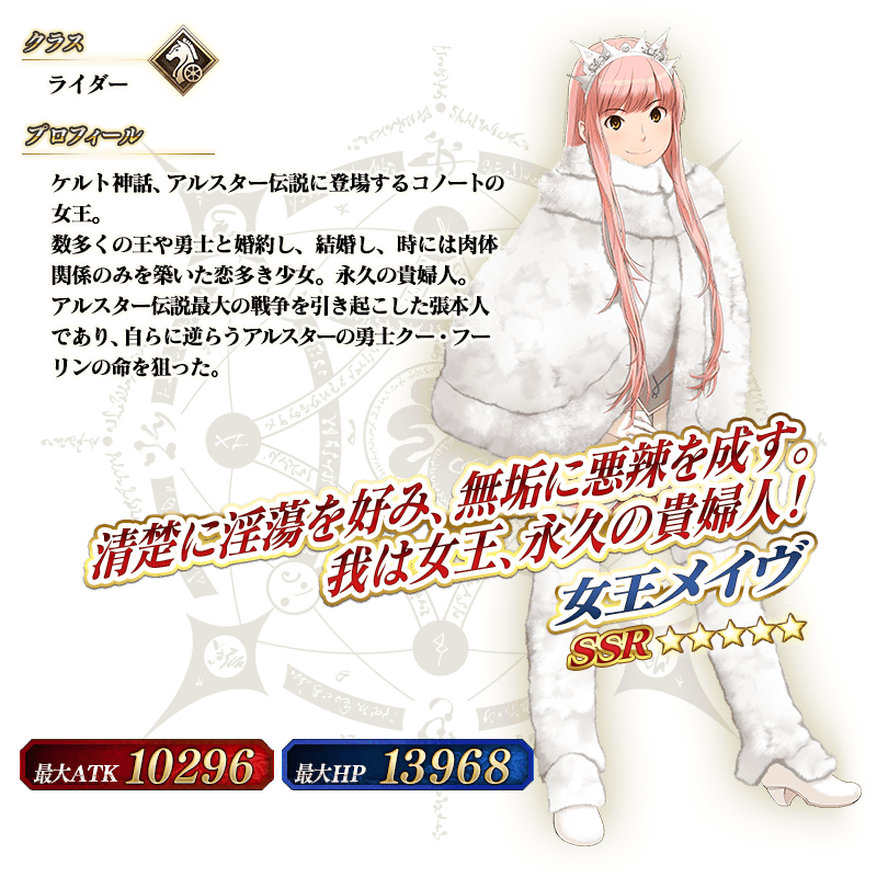 ※★4(SR)以上確定にはサーヴァントと概念礼装が含まれます。 ※ライダークラス以外のサーヴァントも排出されますのでご注意ください。 ※2019年1月1日(火) 0:00以降に新たに配信されるメインストーリー、期間限定イベント、一部クエスト、キャンペーンおよび召喚では、真名隠し対象サーヴァントの真名が表示されます。