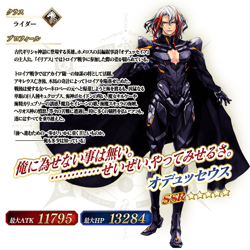 ※上記の「★5(SSR)オデュッセウス」のイラストは霊基再臨第2段階のものです。