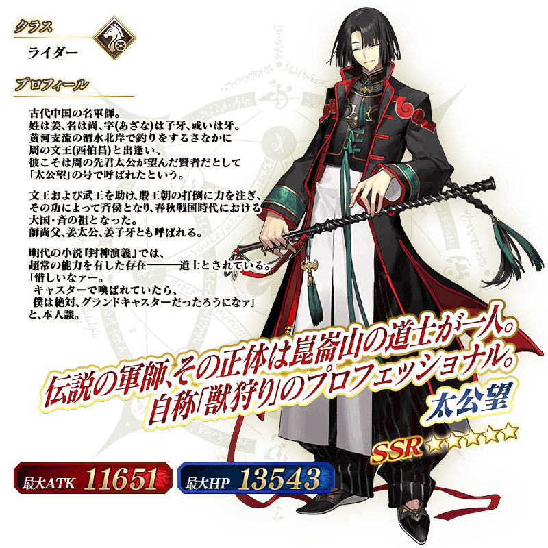 ※上記の「★5(SSR)太公望」のイラストは霊基再臨第2段階のものです。