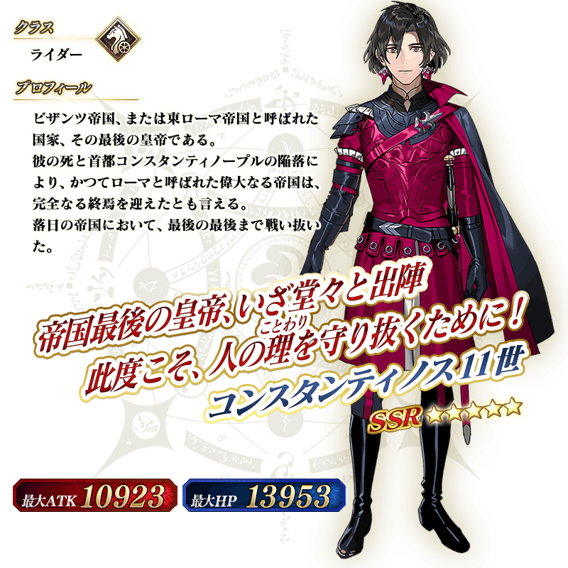 ※上記の「★5(SSR)コンスタンティノス11世」のイラストは霊基再臨第2段階のものです。