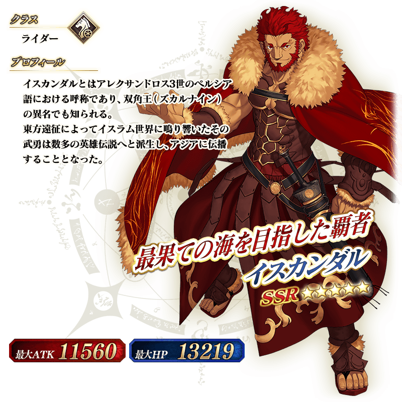 ※上記の「★5(SSR)イスカンダル」のイラストは霊基再臨第2段階のものです。