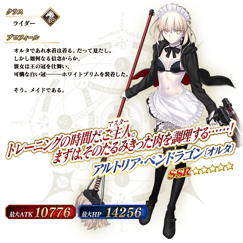 ※上記の「★5(SSR)アルトリア・ペンドラゴン〔オルタ〕(ライダー)」のイラストは霊基再臨第2段階のものです。