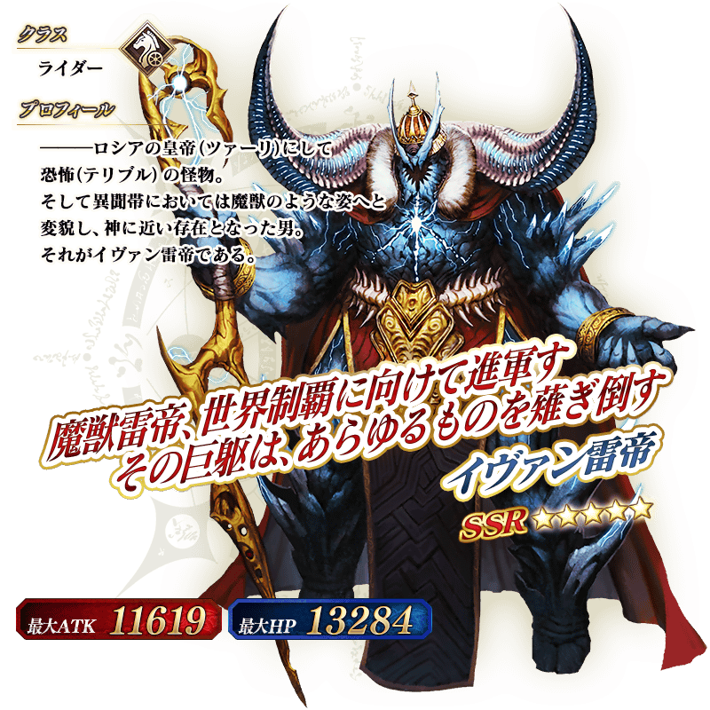 ※上記の「★5(SSR)イヴァン雷帝」のイラストは霊基再臨第2段階のものです。
