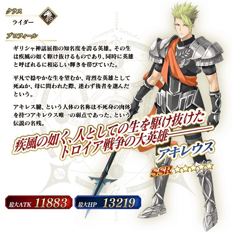 ※上記の「★5(SSR)アキレウス」のイラストは霊基再臨第2段階のものです。