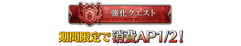 下記の期間中、期間限定でイベントボーナスサーヴァントの「強化クエスト」の消費APが1/2になります!(バトルにおいて撤退した場合でも、同様の消費量になります)