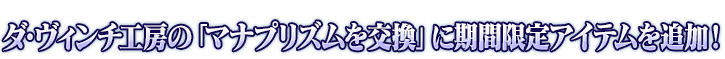 【期間限定】ダ・ヴィンチ工房の「マナプリズムを交換」に期間限定アイテムを追加!