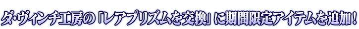 【期間限定】ダ・ヴィンチ工房の「レアプリズムを交換」に期間限定アイテムを追加!