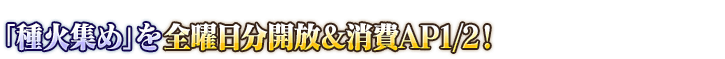 【期間限定】「種火集め」を全曜日分開放&消費AP1/2!