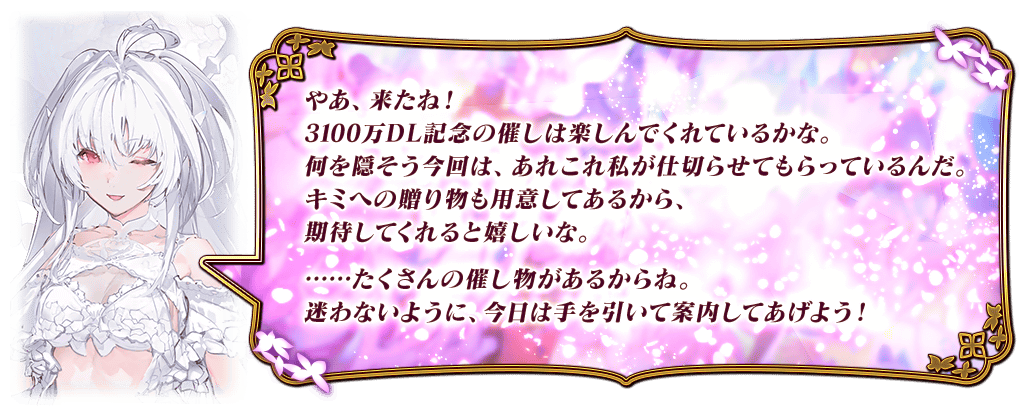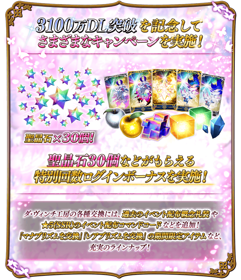 3100万DL突破を記念した、特別なログインボーナスを実施いたします。