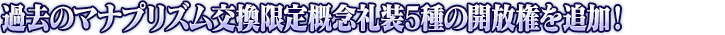 ダ・ヴィンチ工房の「レアプリズムを交換」に、過去に登場したマナプリズム交換限定概念礼装5種の開放権を恒常的に追加いたします!